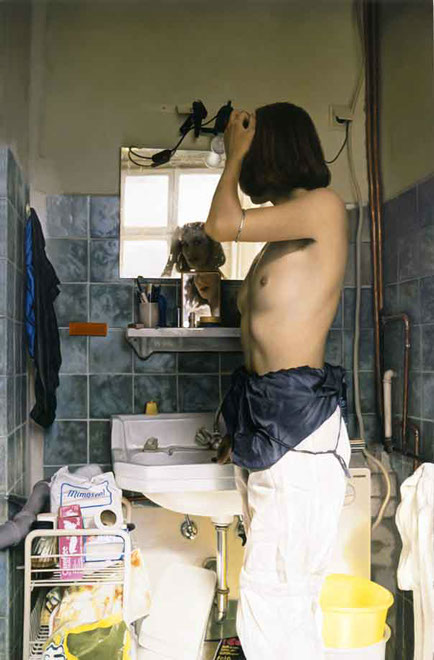 "Beate im Bad", 1986, Harzöl auf Holz, 190x128 cm