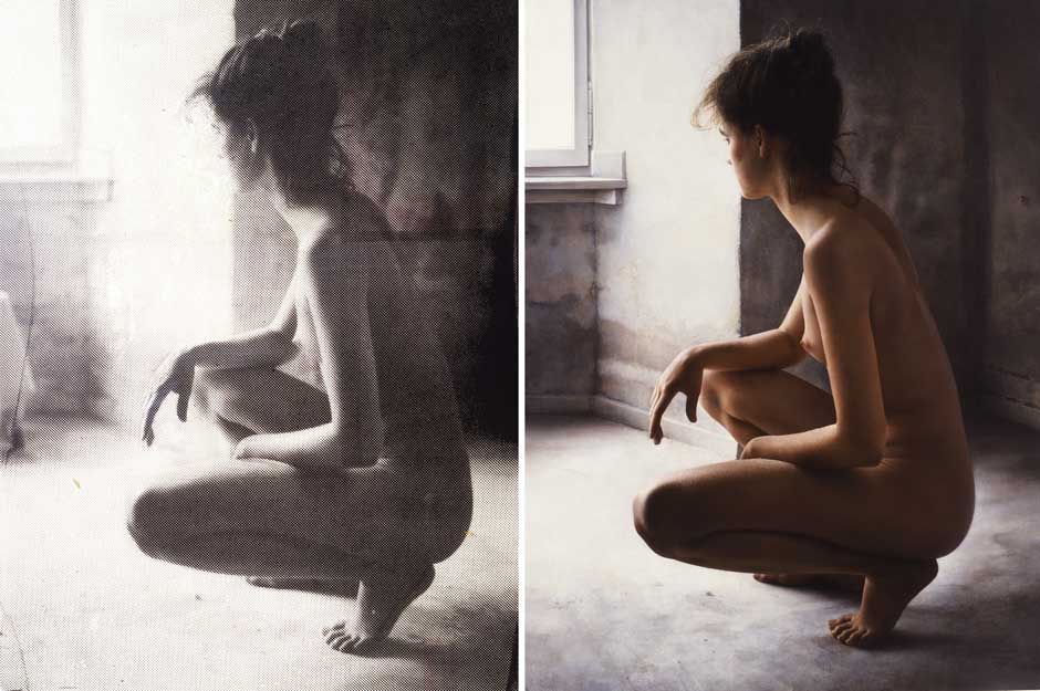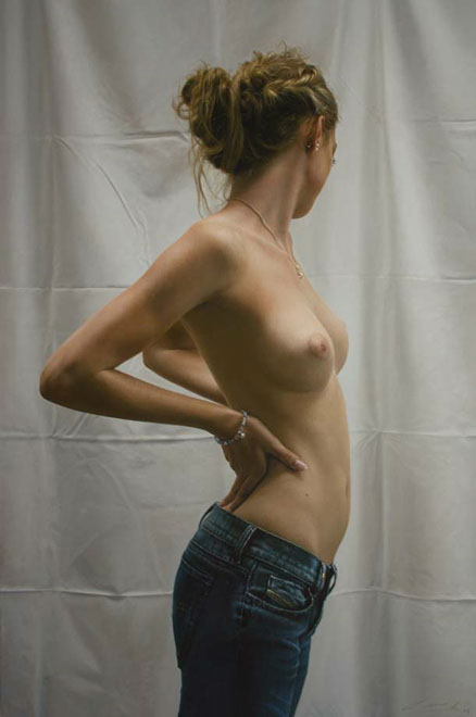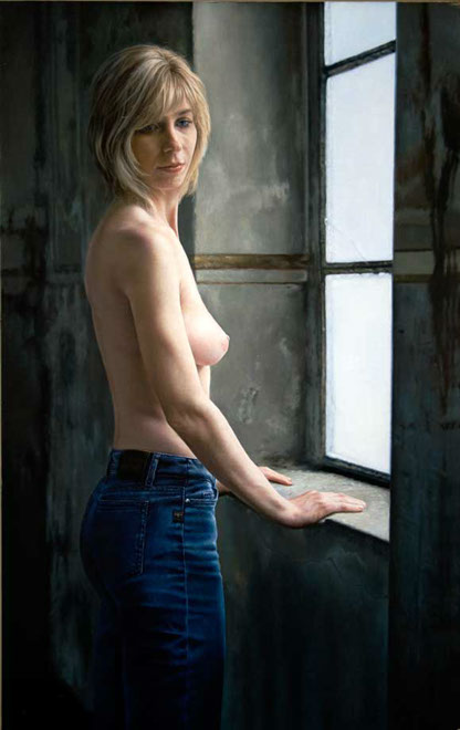 "Karina vor weißem Tuch", 2013, Harzöl auf Leinwand auf Holz, 120x80 cm